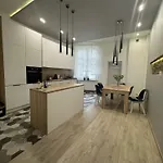 Chopin Park_Apartament lägenhet erbjuder ett kök samt rum med te/kaffebryggare, sitthörna och strykjärn med strykbräda. Lägenheten ligger 450 meter från Corso Shopping Center och bara 5 minuters promenad från Kristus Konungens kyrka.